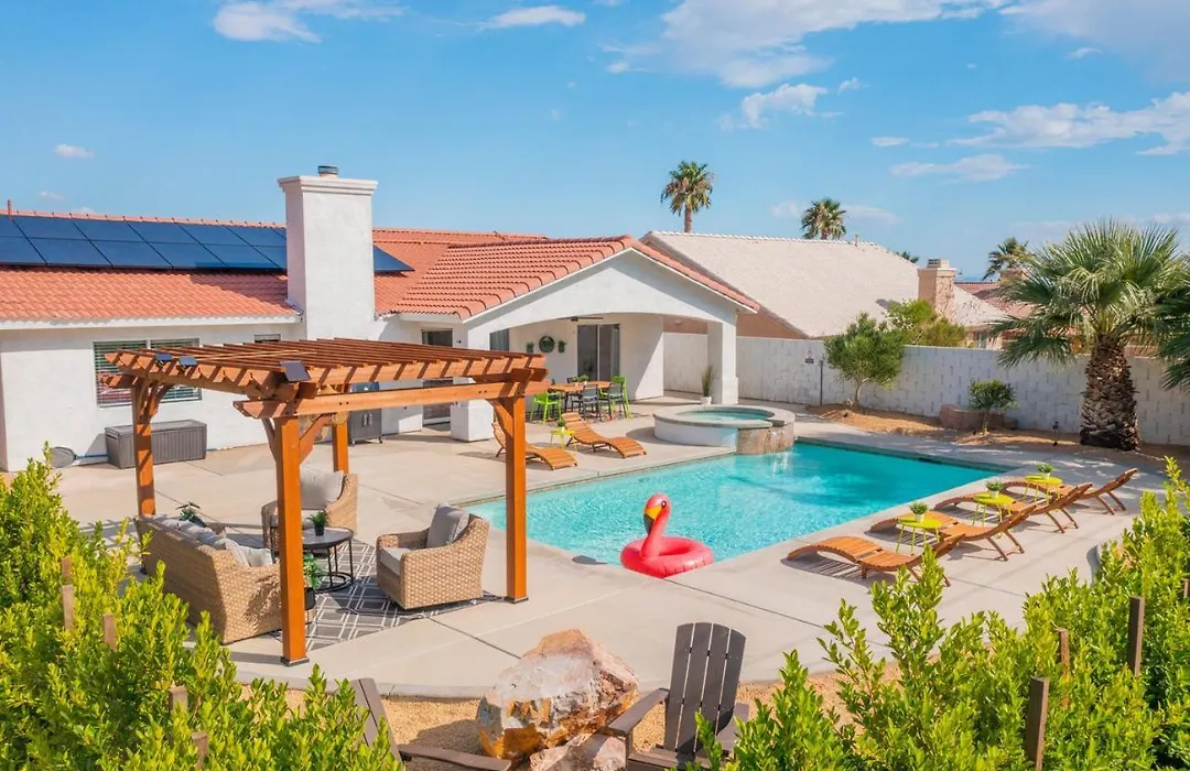 Desert Oasis-Large Pool & Spa, Firepit, Gameroom, Hammocks villa offers self-catering amenities, such as a fully-equipped kitchen, and an outdoor dining area for guests' convenience. The kitchen also offers a toaster, a stovetop, and glassware. 7-Eleven, serving a wide range of meals, is merely 550 metres away. A hot tub are available on-site.