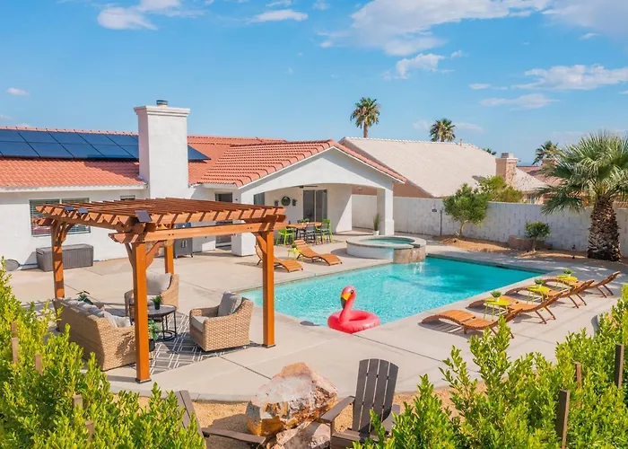The accommodation is within 20 km of Palm Springs airport and in the vicinity of such cultural points of interest as the Desert Hot Springs Library. Desert Oasis-Large Pool & Spa, Firepit, Gameroom, Hammocks villa is 2.5 km from the American Cabot's Pueblo Historic House Museum.